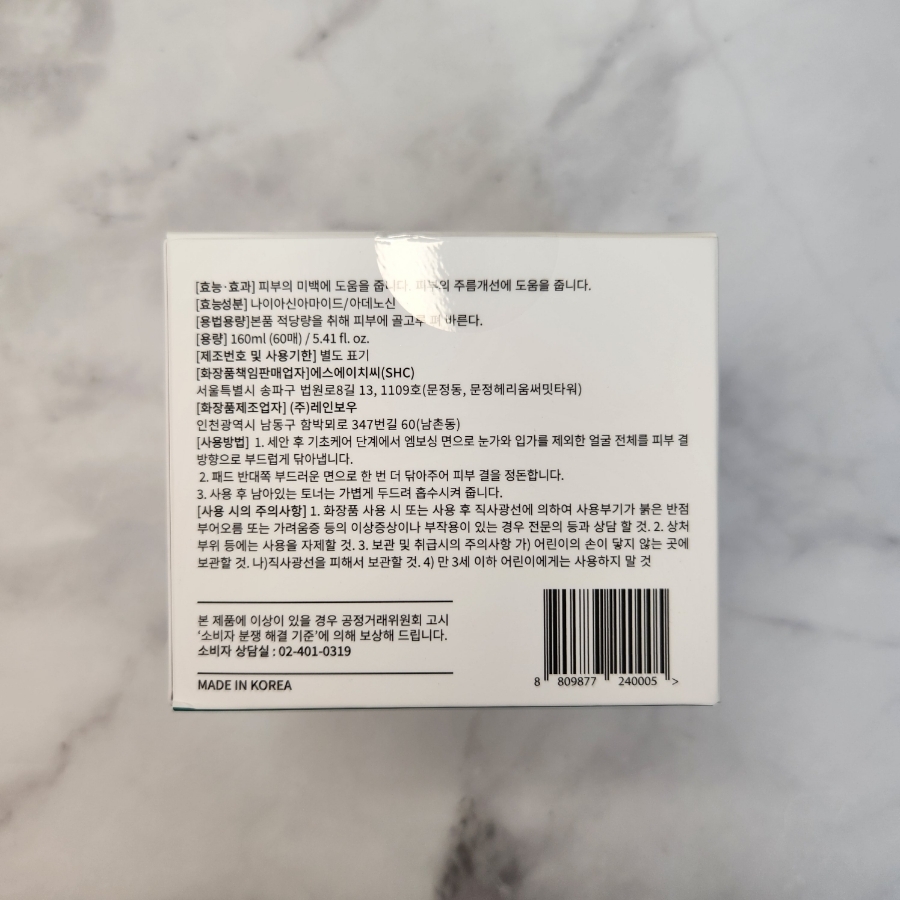나이아신아마이드, 아데노신으로 미백, 주름 개선에 도움을 주는 2중 기능성 스킨 토너 패드에요ㅎㅎ