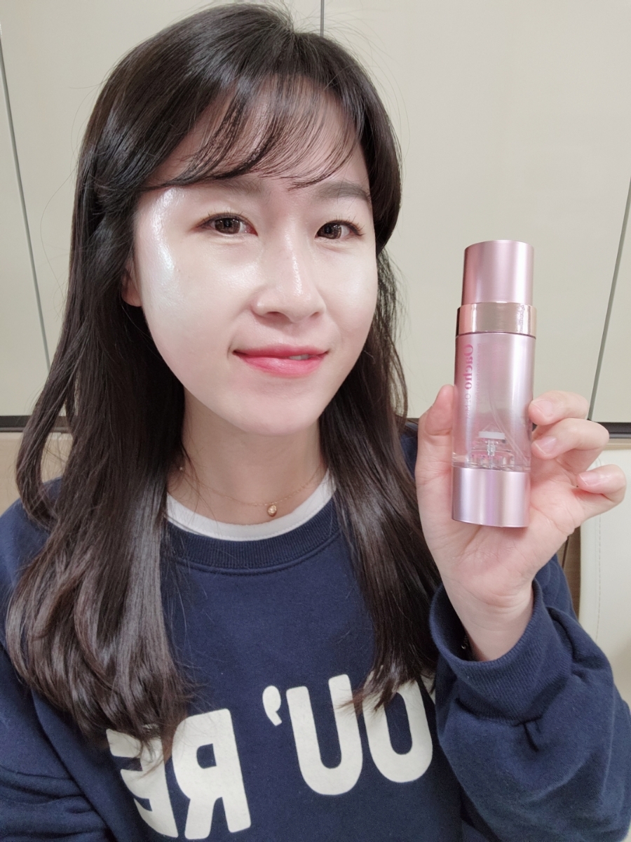 얼굴에 촉촉함이 보이시나요? 적당히 흔들어서 분사하면 미세한 산소방울 미스트가