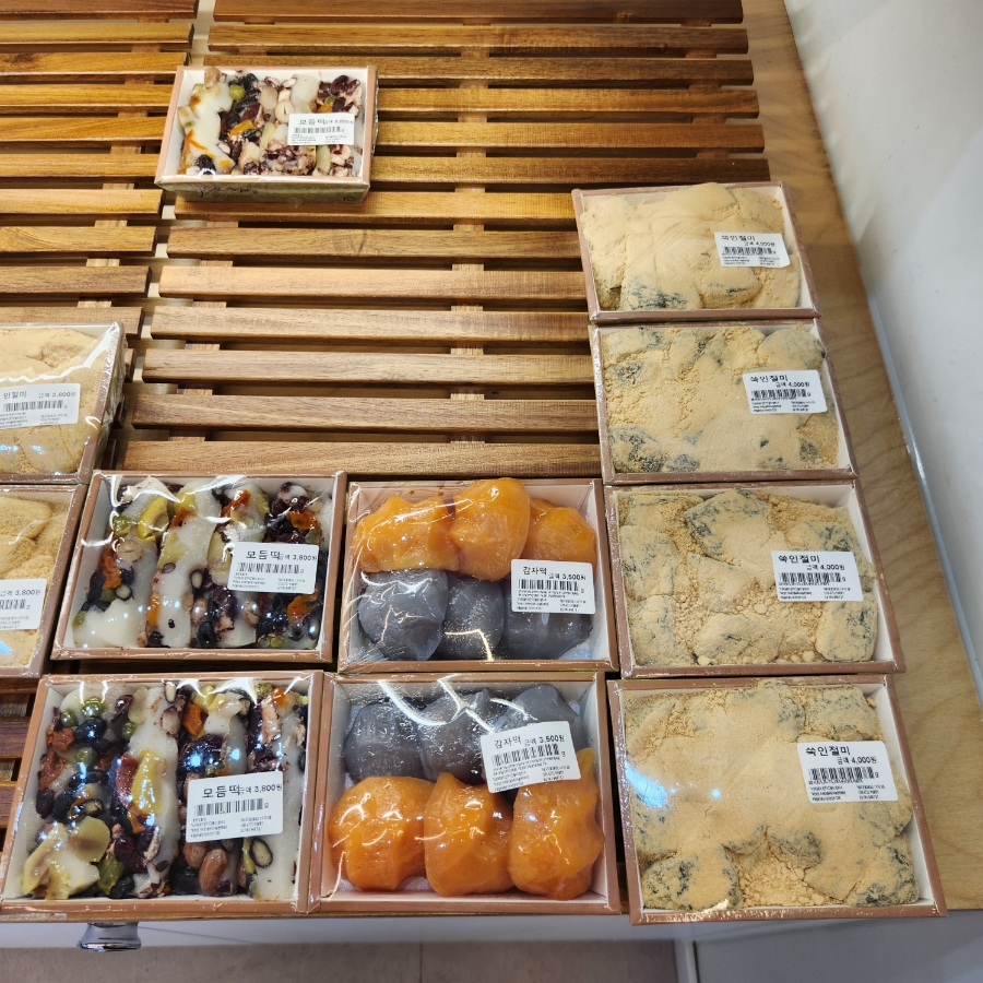 그래도 종류별로 조금씩 남아있어서 다양한 떡들을 구경할 수 있었어요.