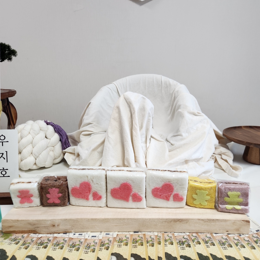 큰 거는 1600원 작은 알록달록한 꿀 설기는 900원이랍니다